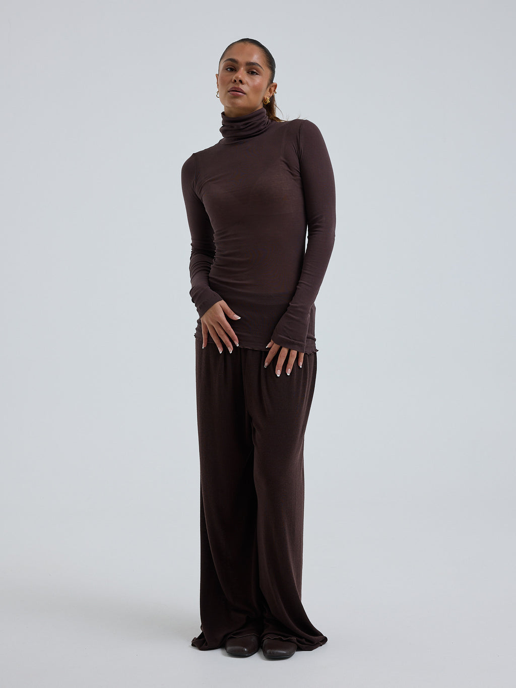 Rollkragenpullover mit langen Ärmeln.