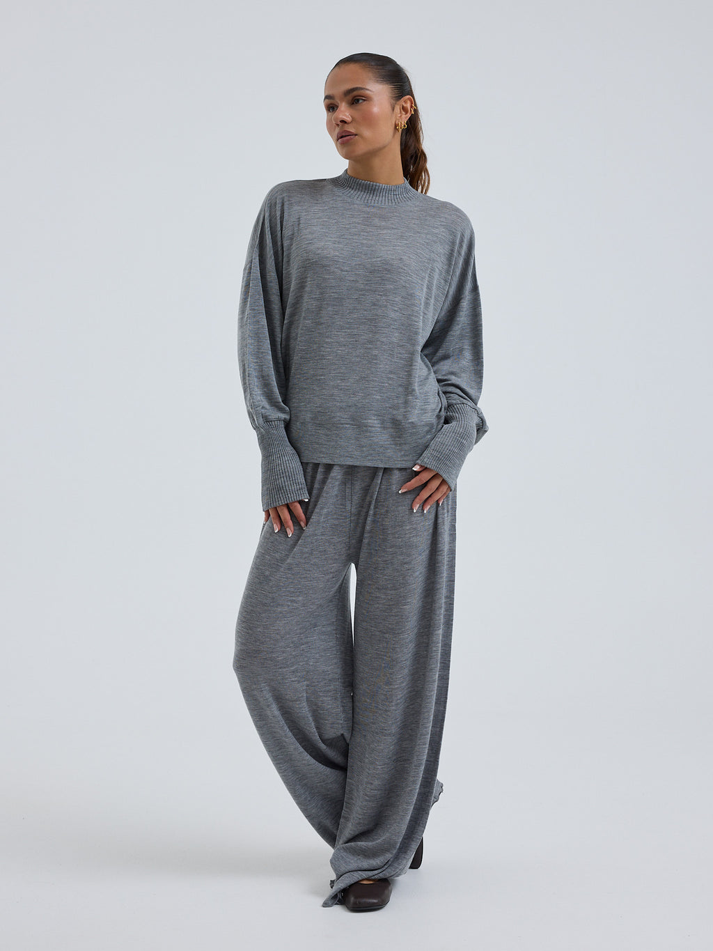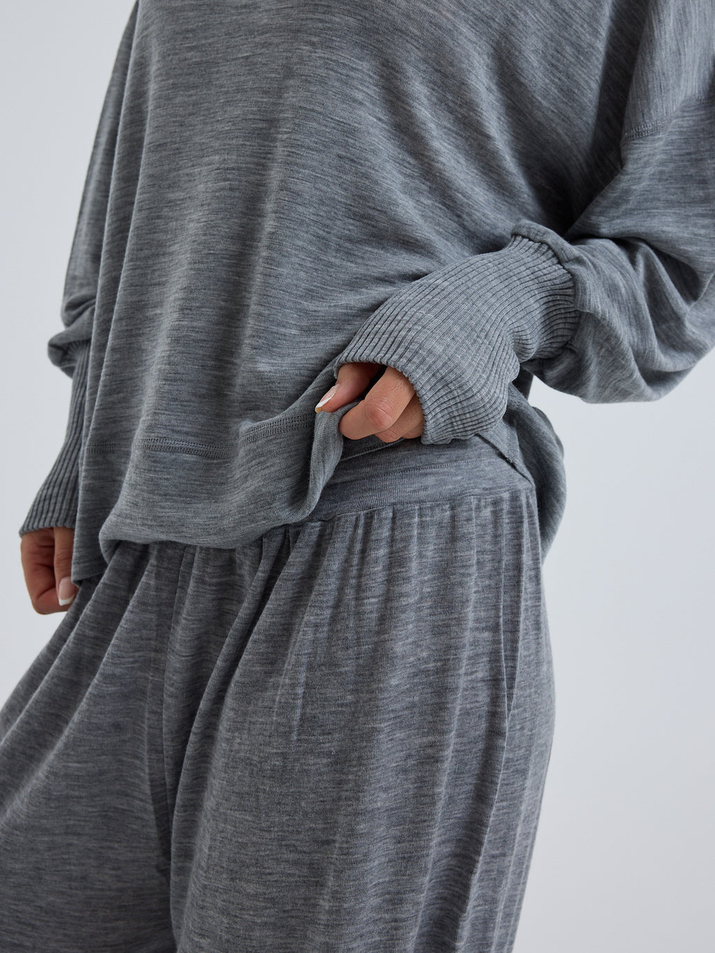 Übergroßes Sweatshirt mit Rippenmuster im Nacken und langen Ärmeln.