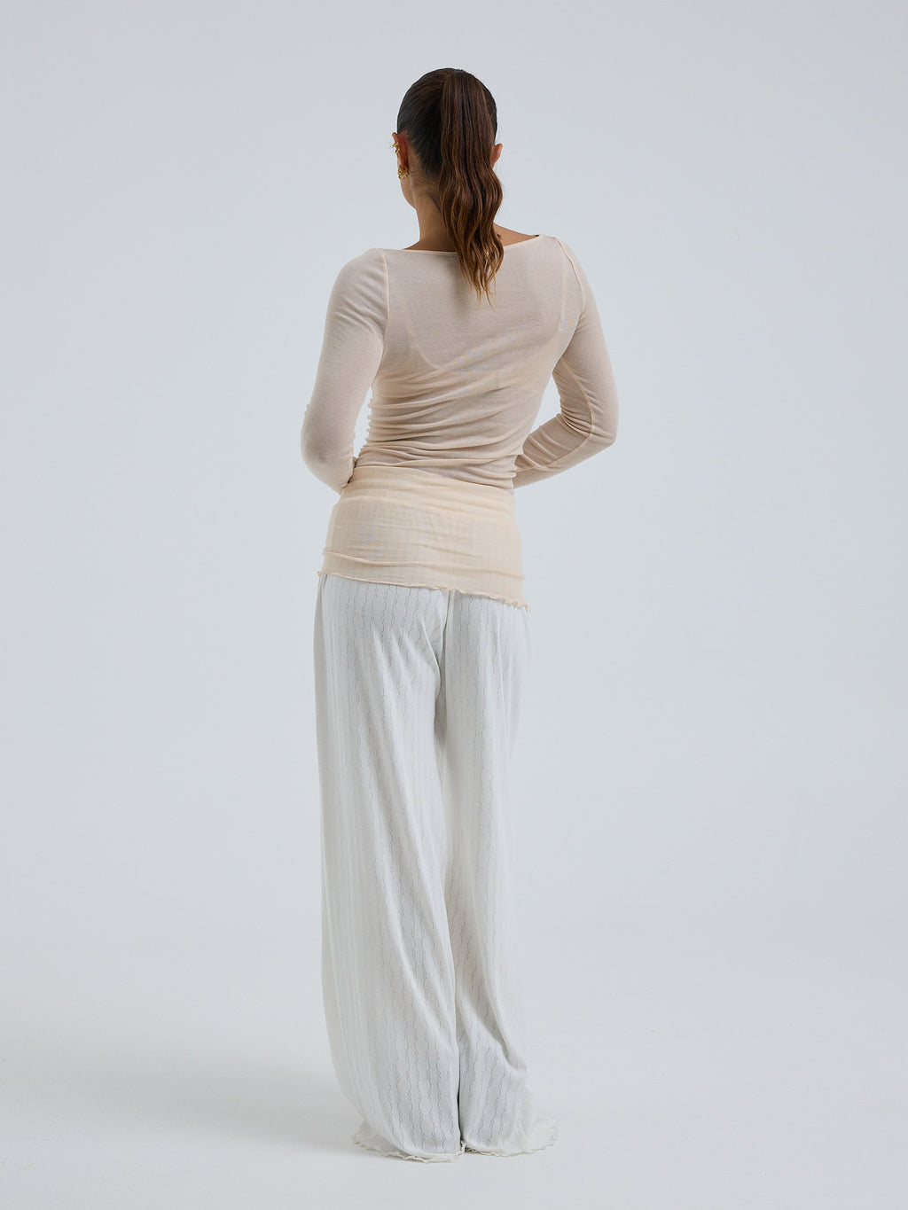 Bluse mit U-Boot Halsausschnitt und langen Ärmeln.