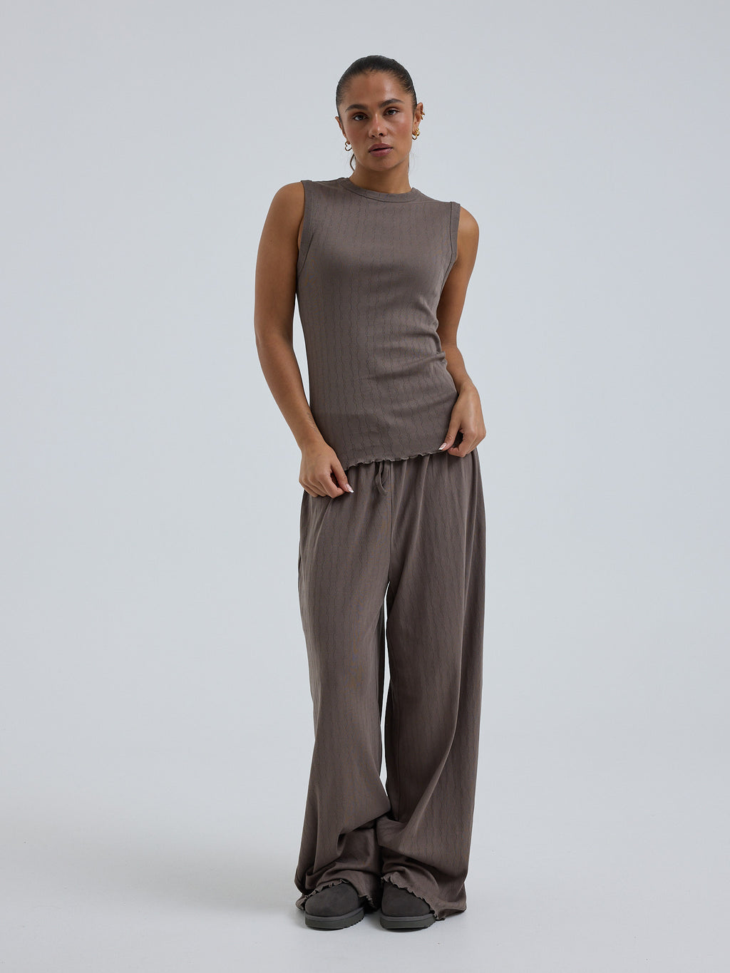 Pointelle Tanktop mit halbtiefem Rundhalsausschnitt.