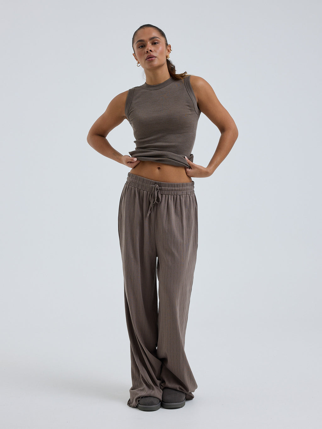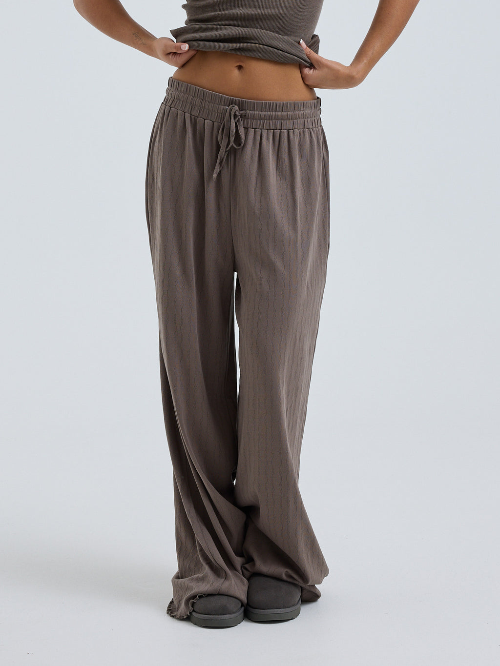 Pointelle Hosen mit elastischer und Schnürung ind der Taille.