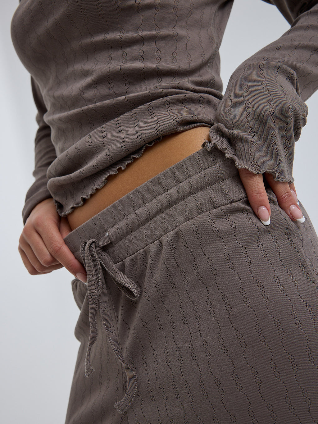 Pointelle Shorts mit elastischer und Schnürung ind der Taille.
