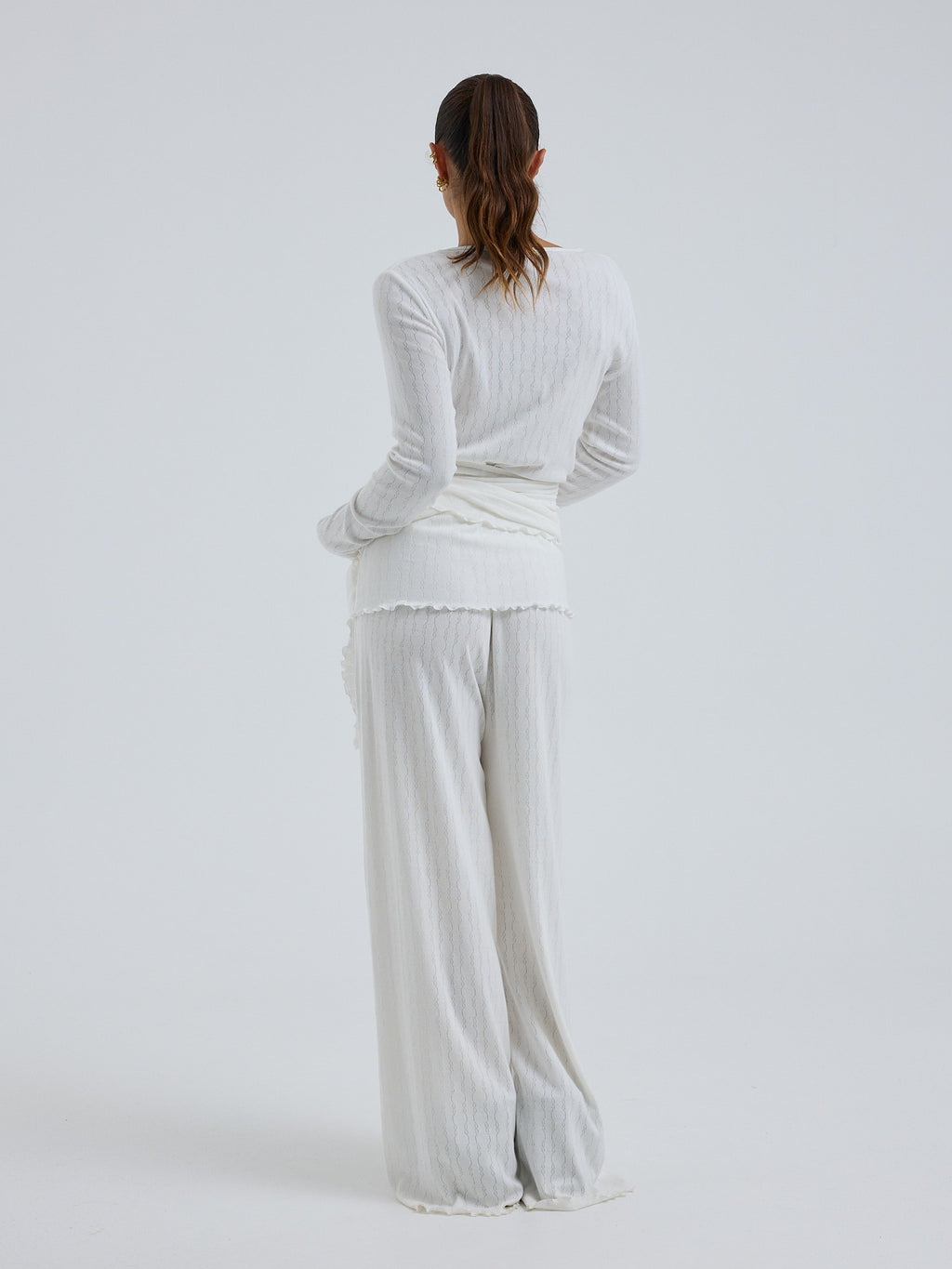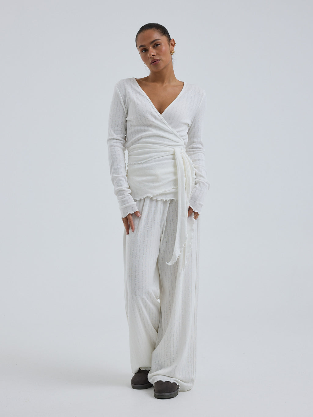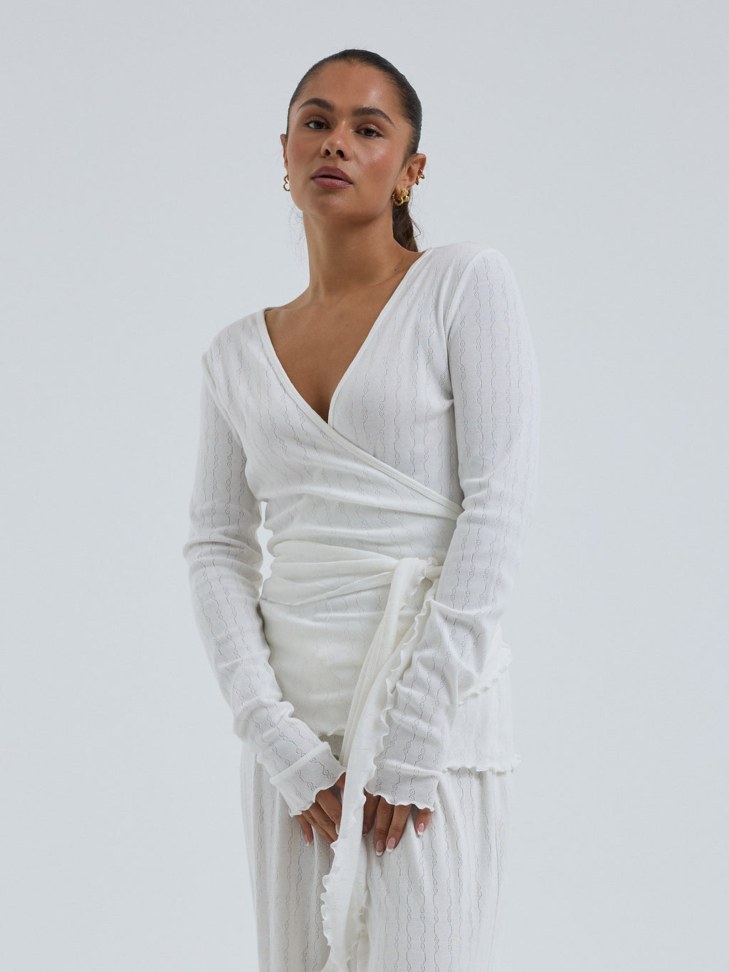 Pointelle Wickelbluse mit V-Ausschnitt und langer ärmeln.